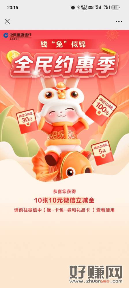 建.行 好运连连抽 有水哈