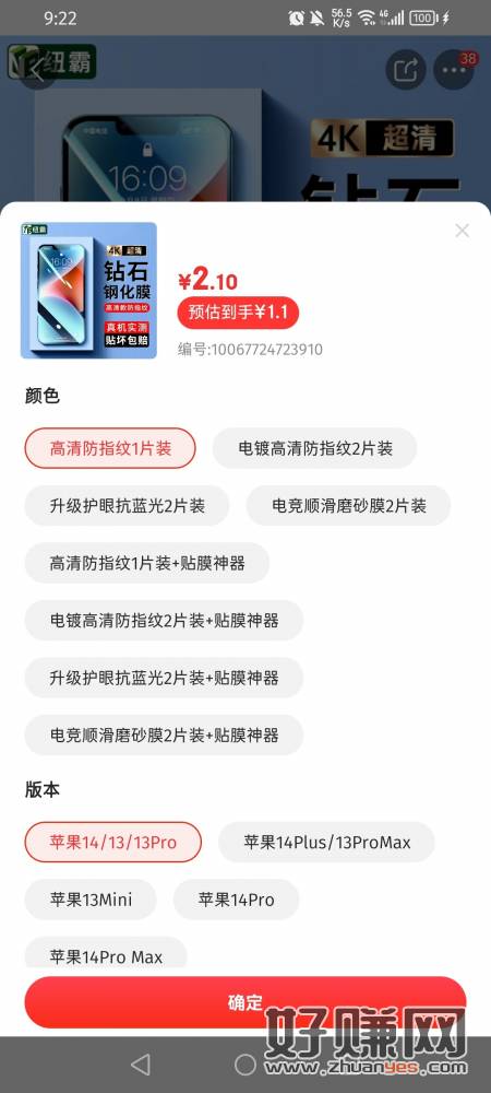 苹果钢化膜1.1一片装 适用于苹果14/13/13pro