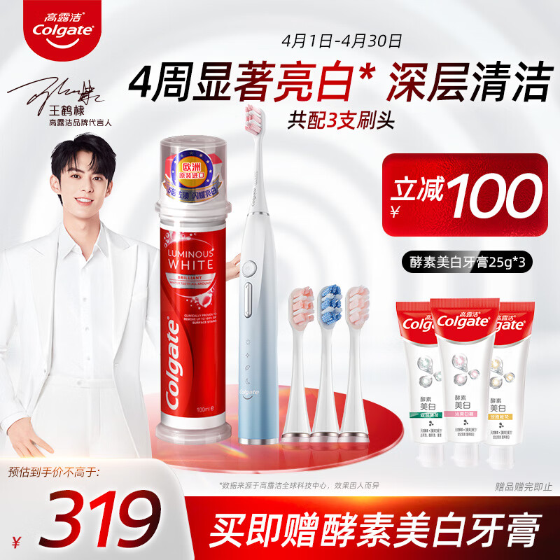 高露洁 悦光系列电动牙刷礼盒装-月蓝DC+耀白去渍按压式牙膏