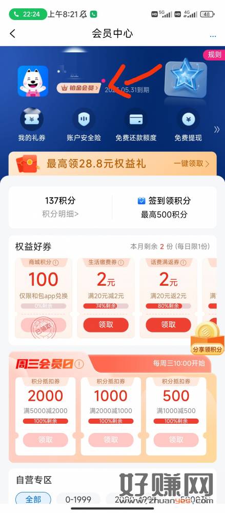 和包app会员补了,会员领过的还可以再领一次。