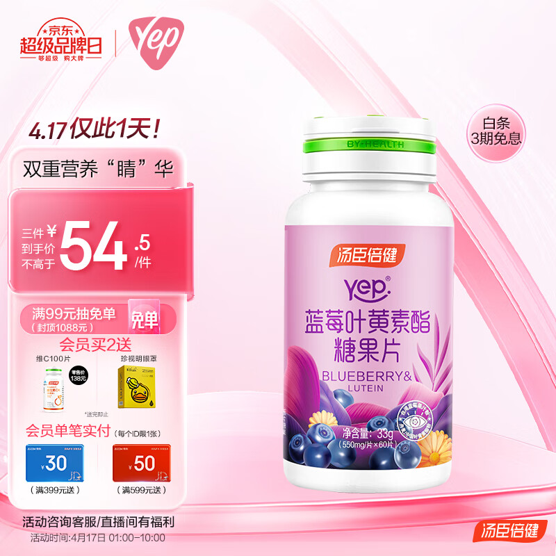 汤臣倍健 Yep蓝莓叶黄素酯糖果片60片,赠维生素C*100片+蒸汽眼罩5片