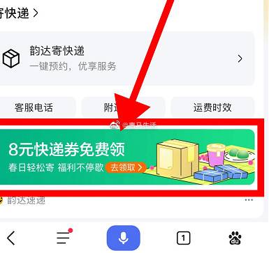 【百度领取多张无门槛寄件券】百度APP搜索“韵达”->点击横幅进入,领取多张无门槛寄件券,最近刚好要寄快递的上