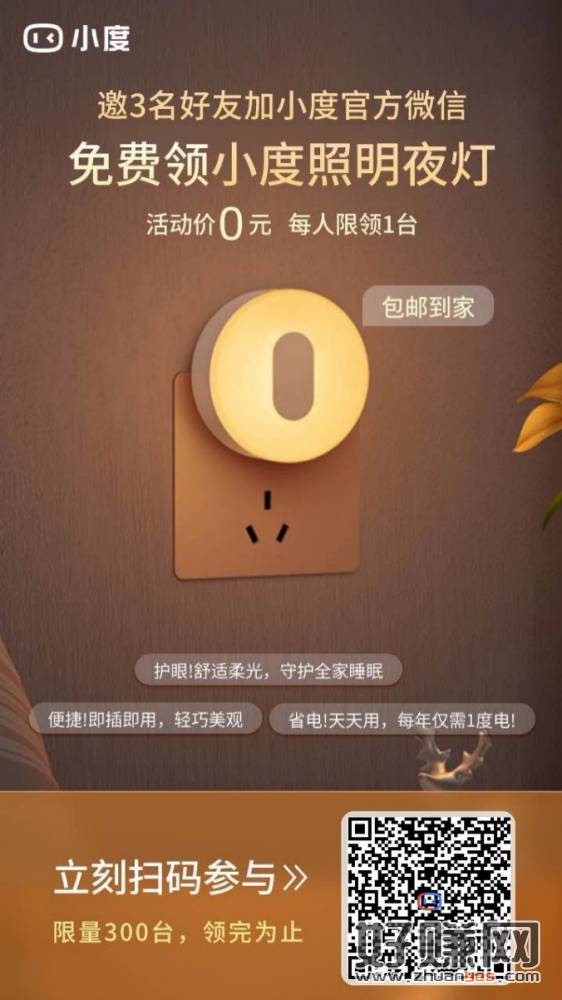 1⃣️邀3人加小度微信,立刻领【小度照明夜灯】一台❗️智能便捷,一年只需一度电❗️