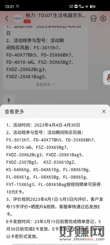 2、活动规参与型号:活动期间购买风扇:FS-3015h7、FD-40X77Bh5、FD-35X66Bh7、FD-4010-WG、FSZ-30X65Bg7、FXDZ-20X62Bcg3、FXDZ-20X61Bag5、FXDZ-2307Bg5、 KSZ-03X61DgZ、KS-04X60g、KS-04X61Dg、FL-08X61Bg、FL-08X61g、FL-08X65Bg、FL-08X65g、FXT-15X65g3、FL-08X65Bag按规则晒单可获得10元E卡。