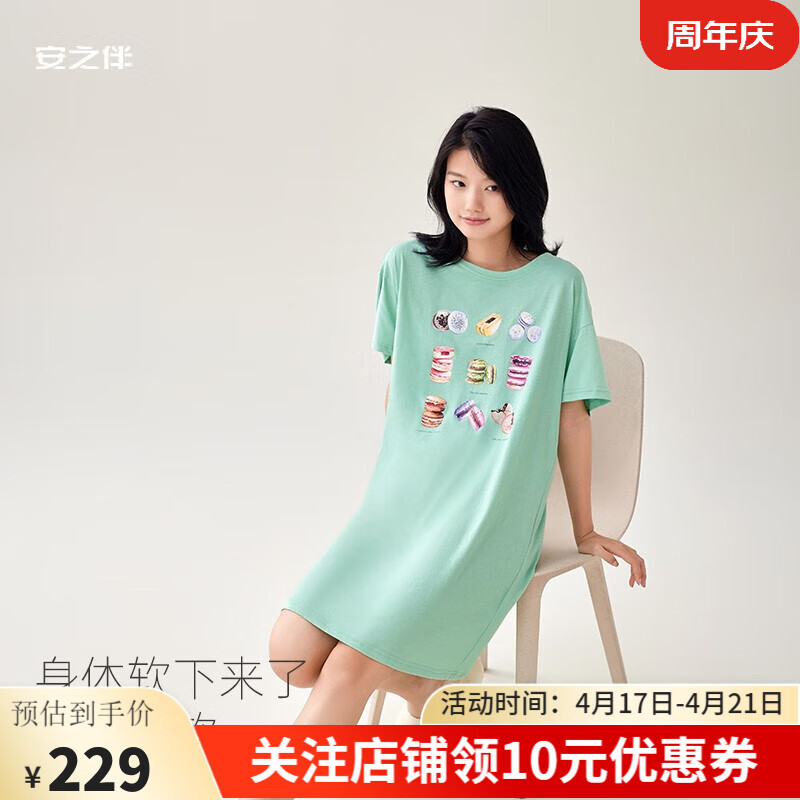 PLUS先领-10全品劵,安之伴夏季纯棉中长款舒适亲肤睡裙