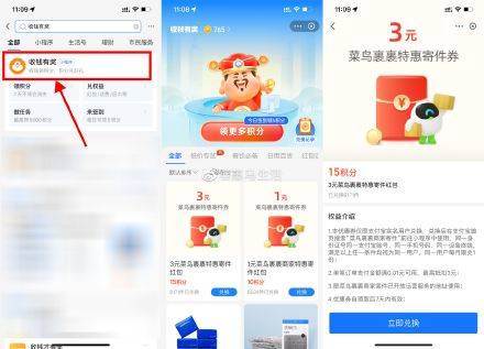 支付宝15积分兑换3元寄件券