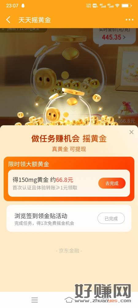 京东金融,搜天天摇黄金,这个任务要开东吴证券,想弄可以去,6