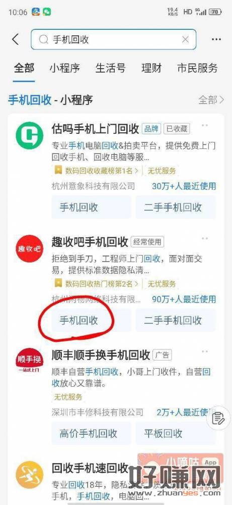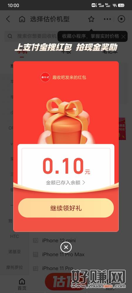 10点支付宝搜手机回收