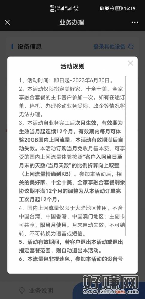 本活动仅限指定美好家、十全十美、全家享融合套餐的主卡客户参加一次。如有在途订单、停机、办理移动业务受限、政企等情况将无法办理。