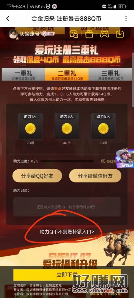 直接补领14Q币 下载爱玩速度去 QQ区