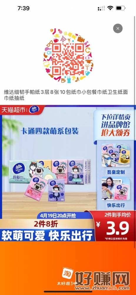 反馈猫超有3.9包邮10包维达小纸巾,可叠翻牌0.01下单。