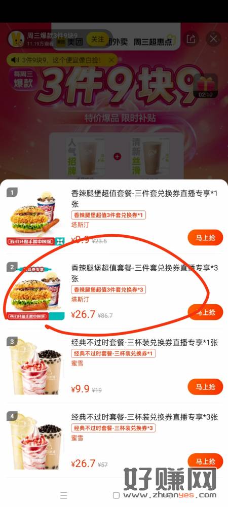 美团那个提醒一下,直播间26.7也就是8.9一份,囤起来也许还可以咸鱼倒卖