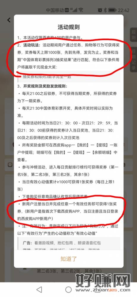 西皮购app,新用户看几个广告就可以获得一个抽奖码,每天上限1000张,抽取一个幸运儿获取奖池奖,规则如图。1/1000的概率中奖上百元,非必中。活动刚开始三期,看得上的来薅啊。点击链接可下载