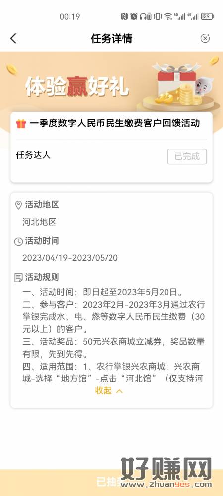 我也不记得我一季度有数币缴费30元以上的,飞河北度假看到的,50商城券,撸了一箱鸡蛋和零食