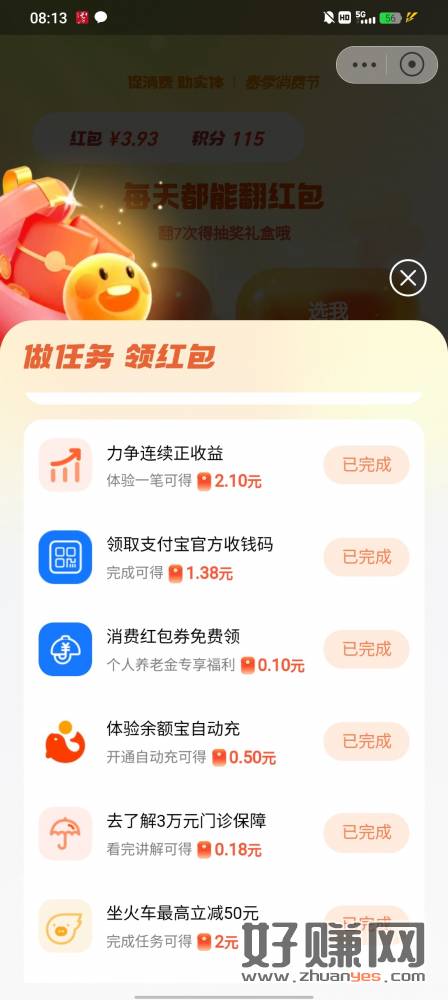 支付宝速度 里面任务除了飞机票不能做其他的做了都可以退 最少