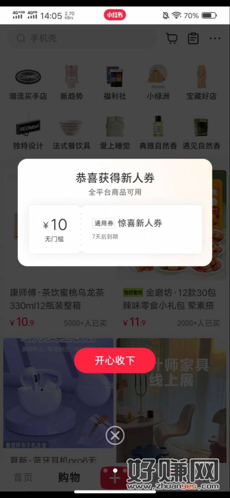 【参与方式】小红书APP-购物进去自动弹出5~10元无门槛券-自己买什么自己决定-0.1撸