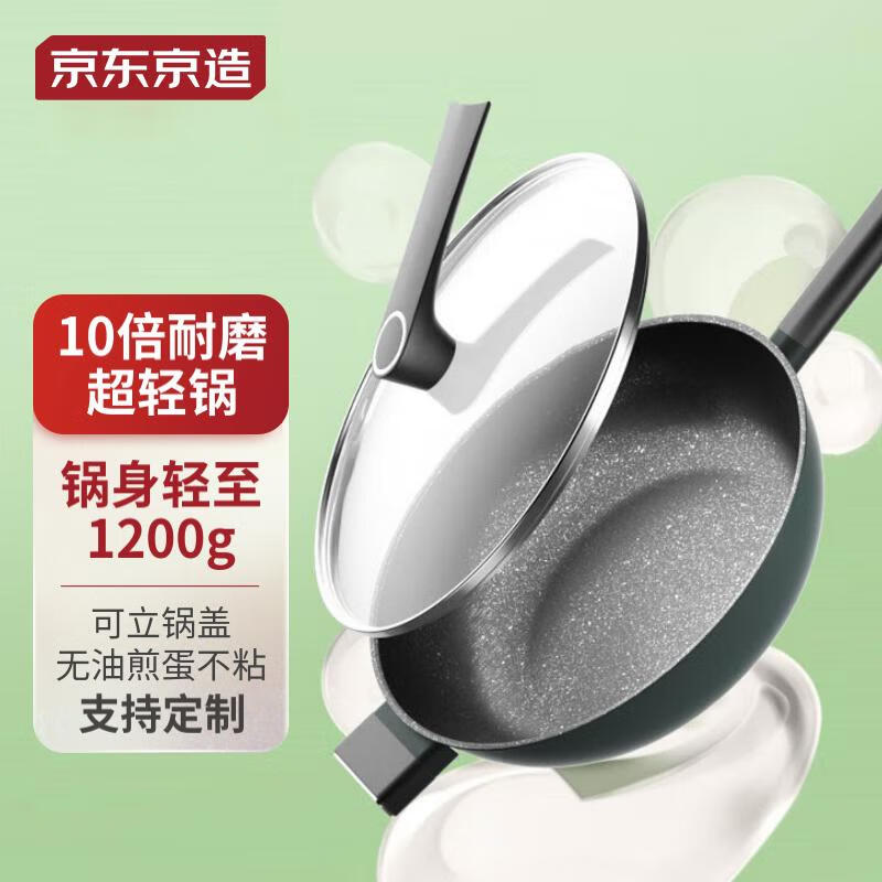 plus先领95折券,自营京东京造 厨具,93亓 304不锈钢蜂窝不粘锅32cm