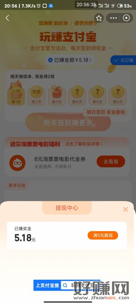 支付宝搜玩赚支付宝,看看有没有绑信用卡的任务,有小毛(5)