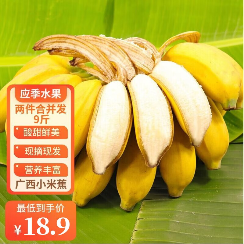 现摘广西 新鲜香甜可口小香蕉5斤装,18.9亓包u