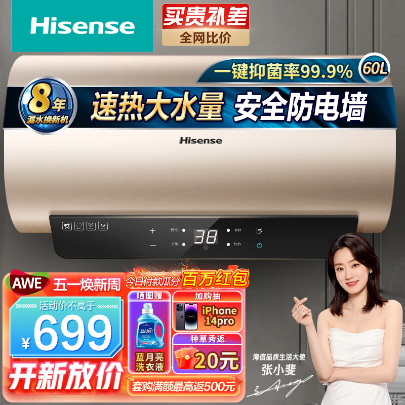 Plus9.9亓499-40券,海信(Hisense)60升速热5.5倍家用节能电热水器
