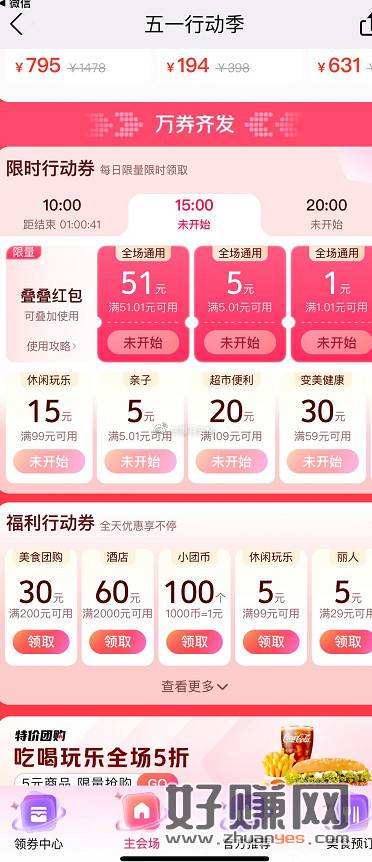 美团五一行动季抢1~51元通用券