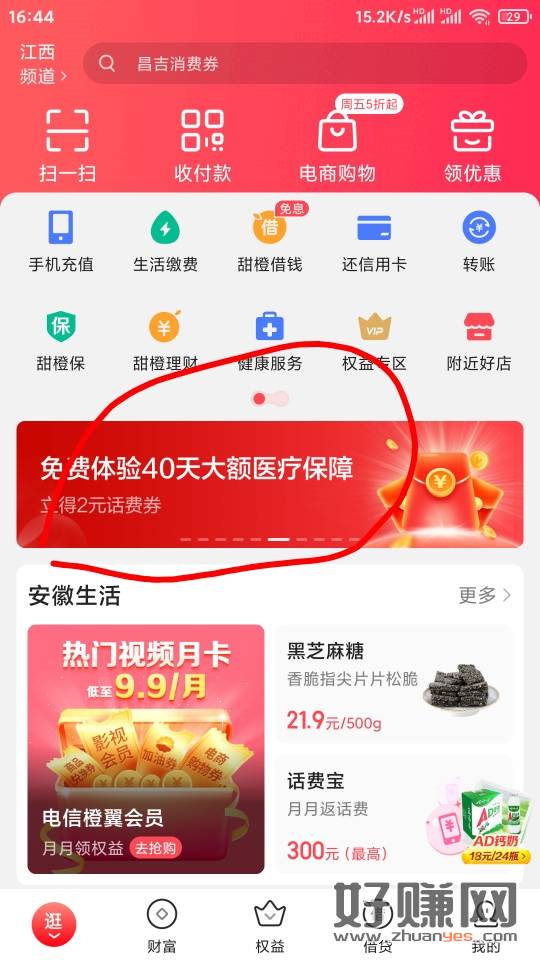 翼支付横幅,免费体验得2r话费券,直充