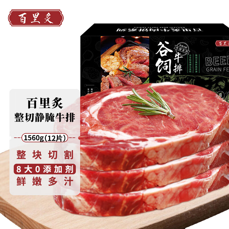 先领页面下149享8折券,百里炙 整切调理上脑牛排130g*12片