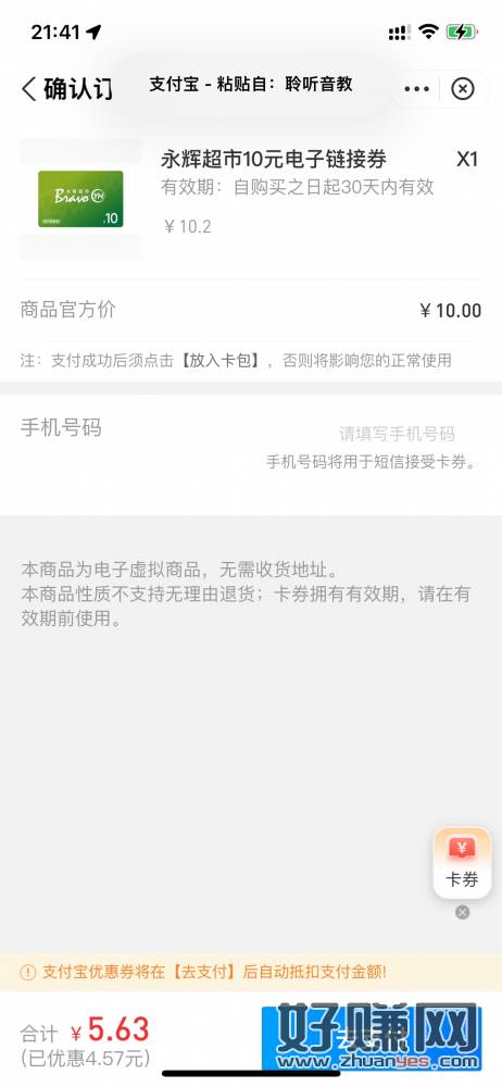 然后搜影音娱乐会员充值,进去买10的永辉购物卡 然后去卖 又是30