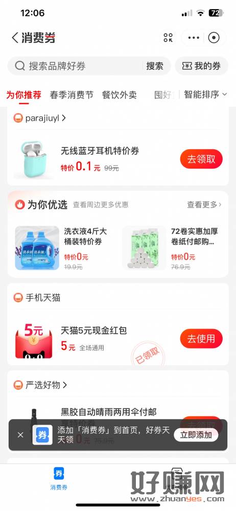 支付宝横幅无门懒消费卷里面有5天猫