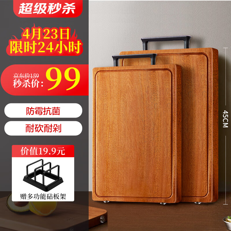 双枪 乌檀木加厚砧板切菜板450*300*25cm,99亓,赠砧板架