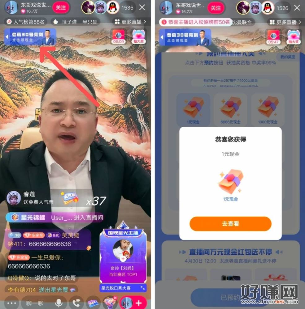 直播左上角预约抽刚中1