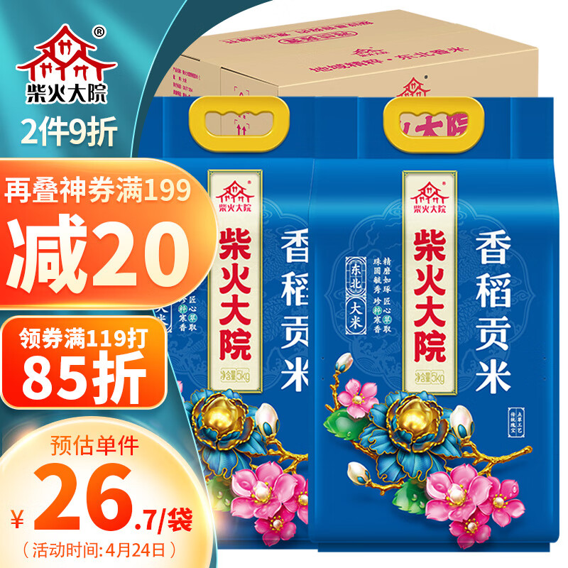 领,柴火大院香稻贡米 5kg*2袋/箱,下單3件,單件53.25亓
