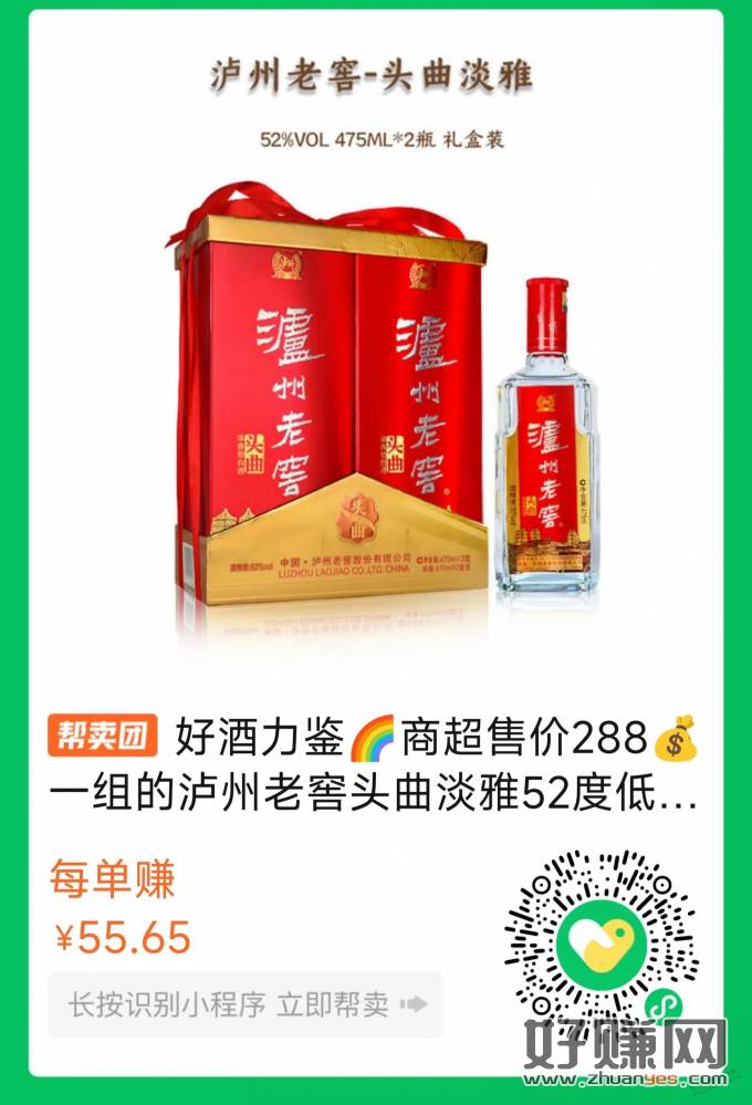 就和上次的美团外卖联盟和淘客一样,大号推广给小号买。这款泸州老窖头曲礼盒下面卖200多,拼多多上价格在170-200之间。看到快团团上卖159,要到了帮卖链接,佣金55.这样自推自卖价格就是104,一瓶52块钱。比泸州黑盖还便宜了。