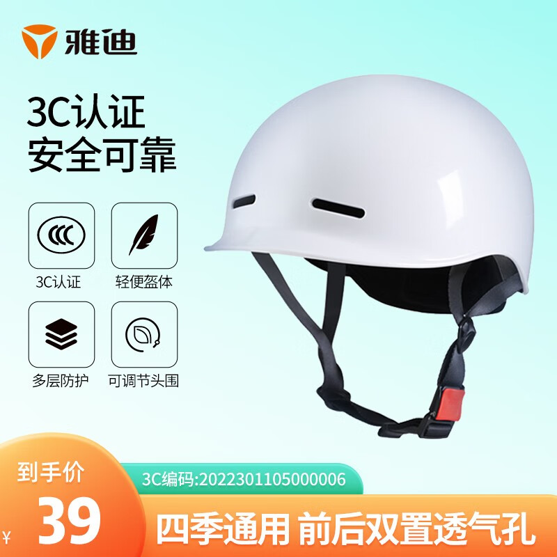 先领59-20券,雅迪(yadea)春夏秋电动车3C头盔