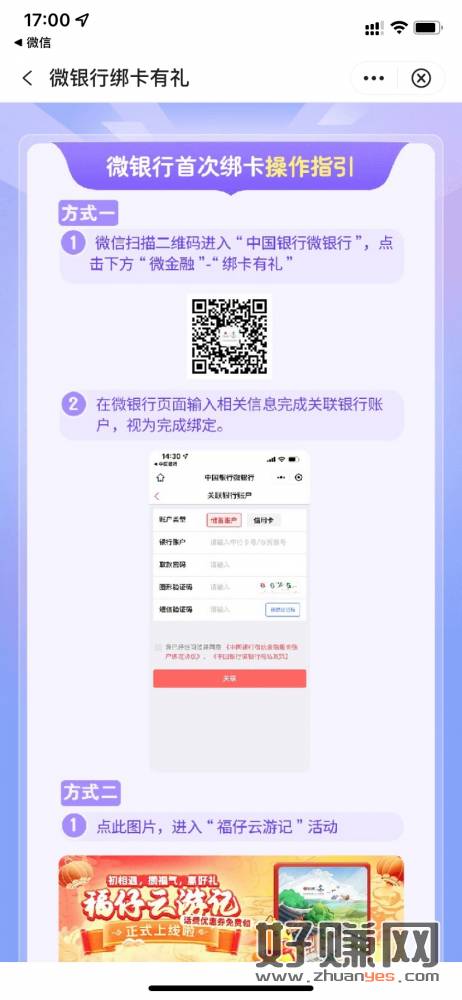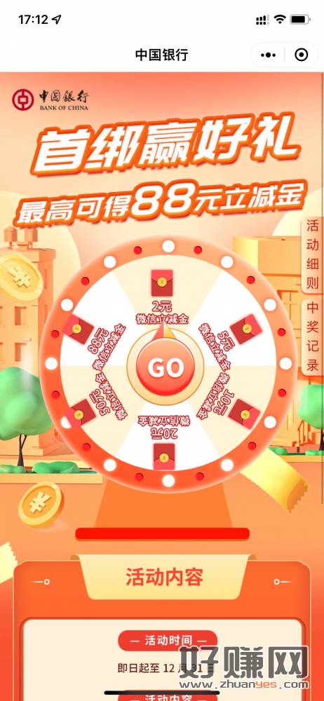 首次绑定中国银行微银行,必中2~88微信立减金
