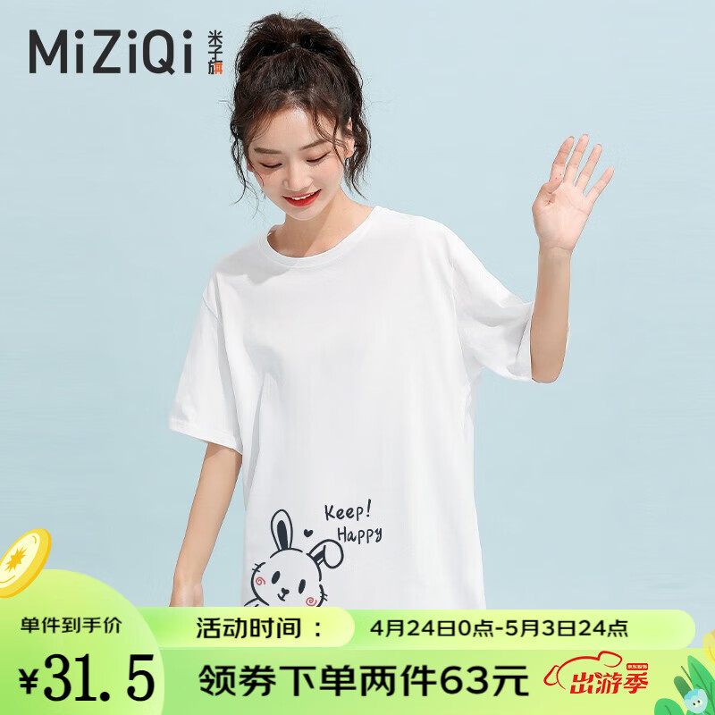 PLUS先领-5全品,米子旗 女士兔年中长款百搭纯棉短袖