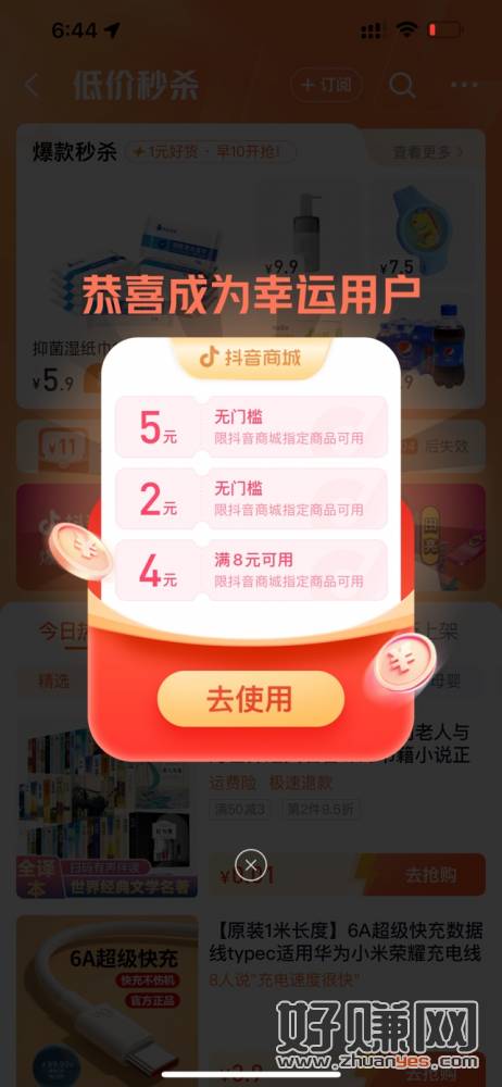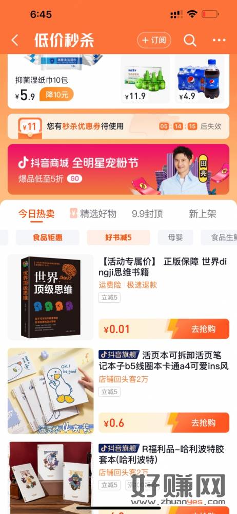 抖音搜低价秒杀,有5无门槛,可以买书,1分钱包邮
