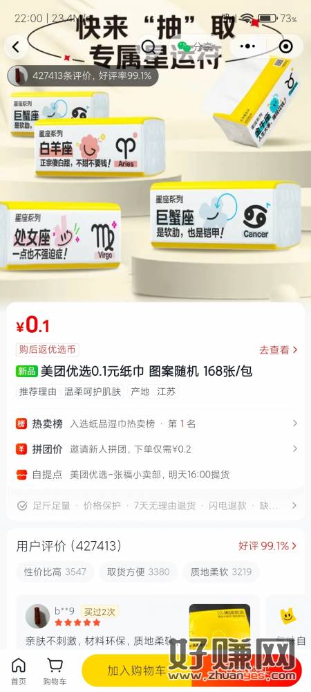 美团优选0.1/纸巾,看看你们有没有,无头。