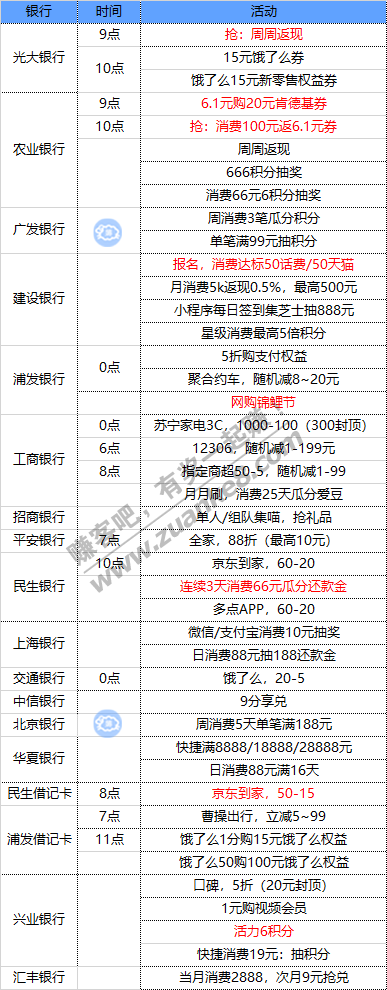 6月1号周一 各大银行活动优惠