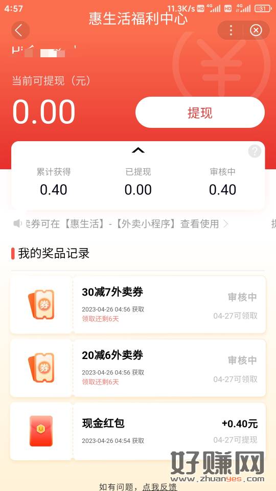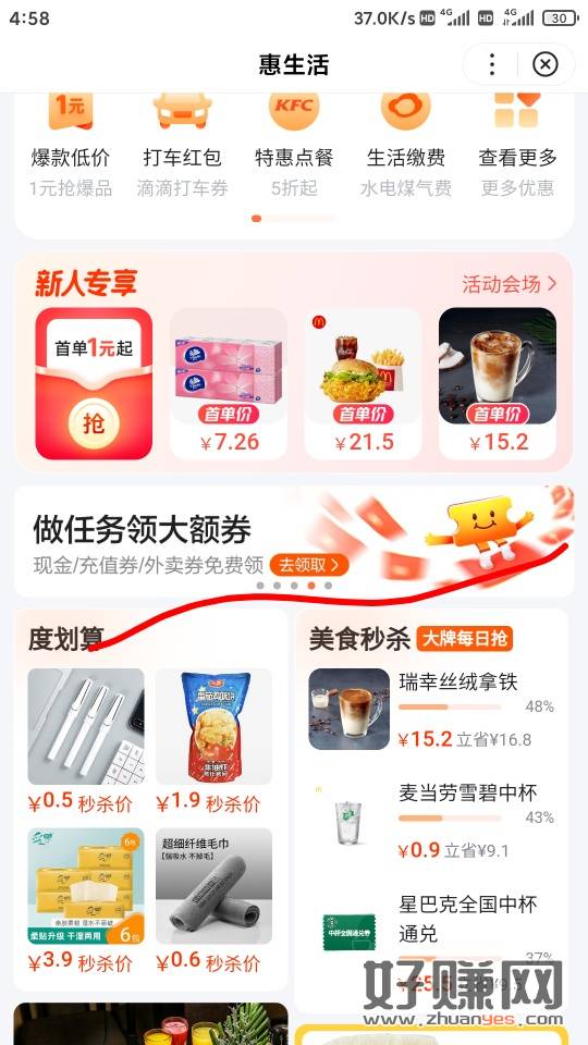横幅做任务,抽现金和外卖券