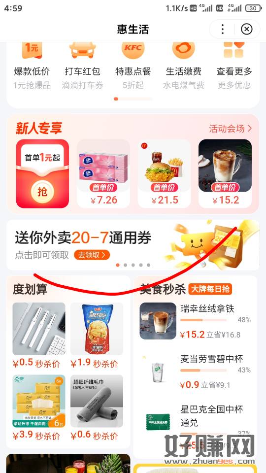 横幅领20-7外卖券