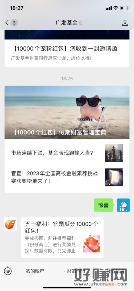 广发基金回复惊喜,答题得积分兑.058