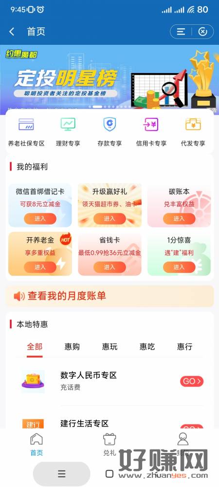 建设银行→约惠魔都→省钱卡,凭运气抽几折购买立减金