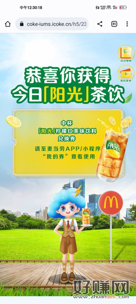 麦当劳每日免费柠檬红茶记得领