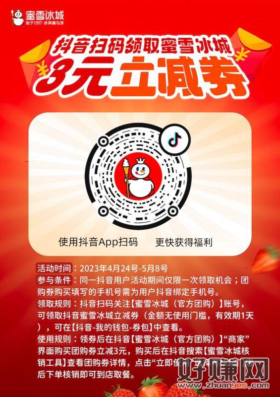 蜜雪冰城抖音 3元立减券