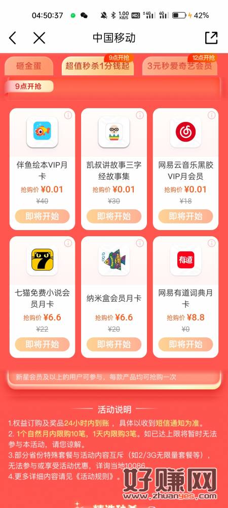 中国移动权益超市会员可以抢,一分钱网易云 ,5块钱瑞幸咖啡,