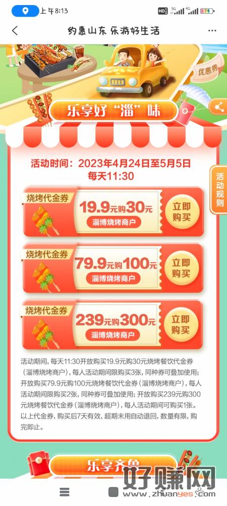 五一去哪,进博赶烤。建行生活山东领大额券,去的话提前预定要不