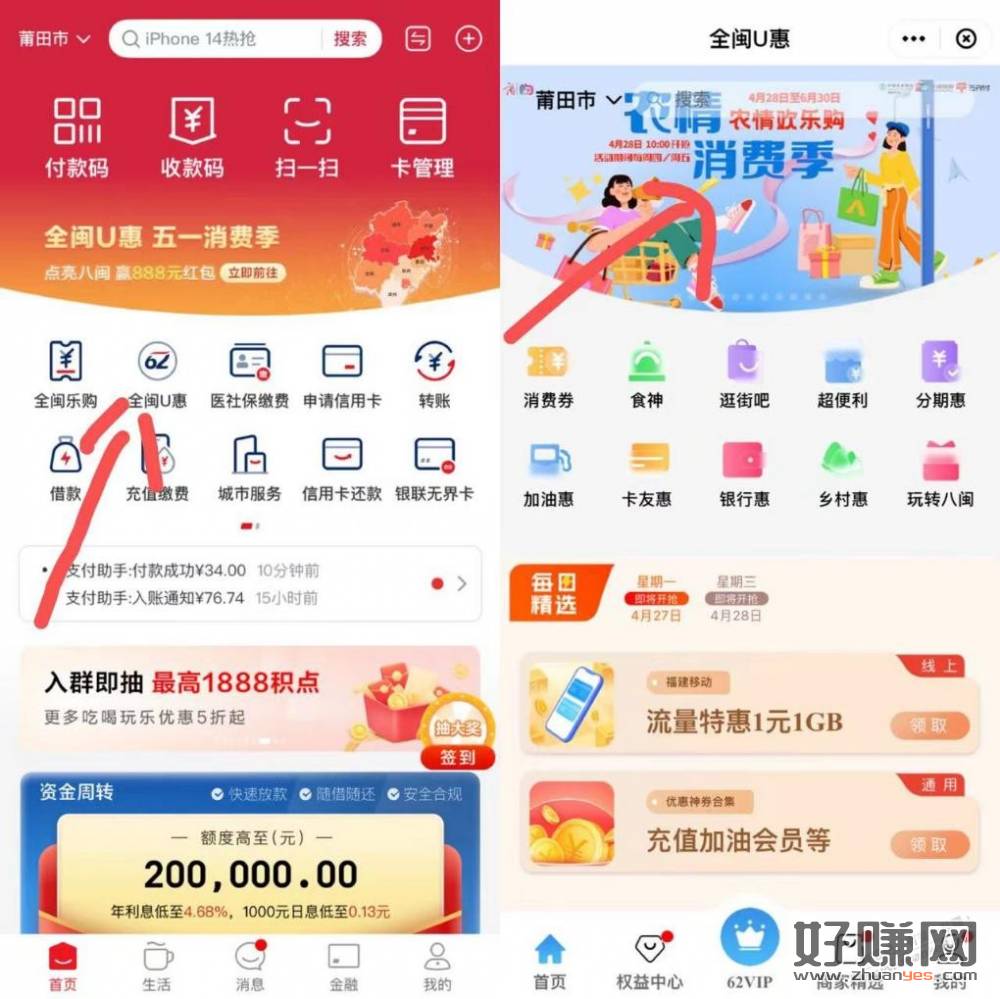 详情见云闪付首页-全闽U惠-顶部导航