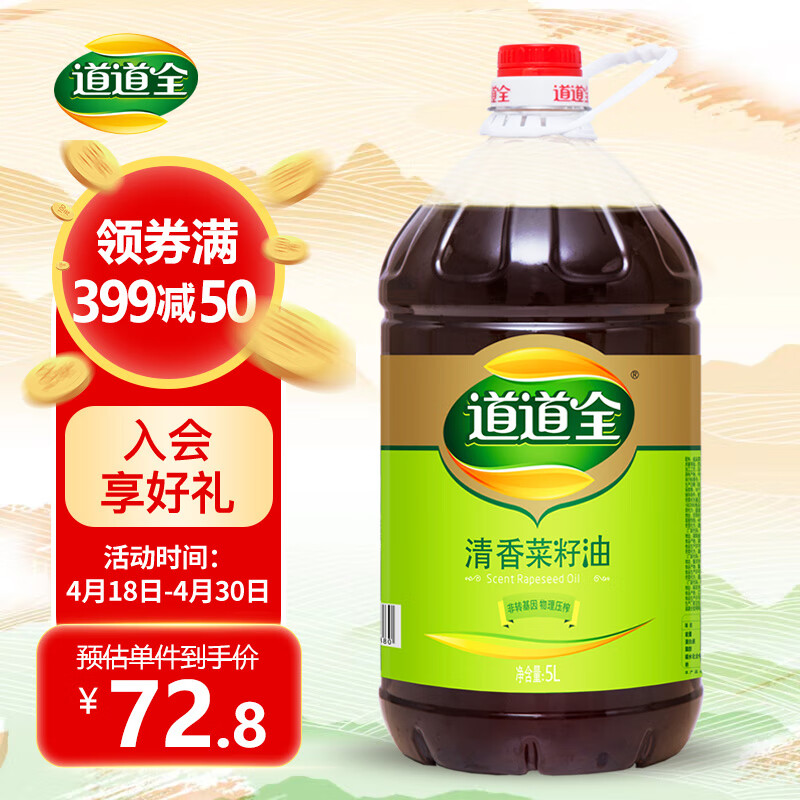 领页面299-30/399-50券,道道全清香菜籽油5L 物理压榨工艺 食用油