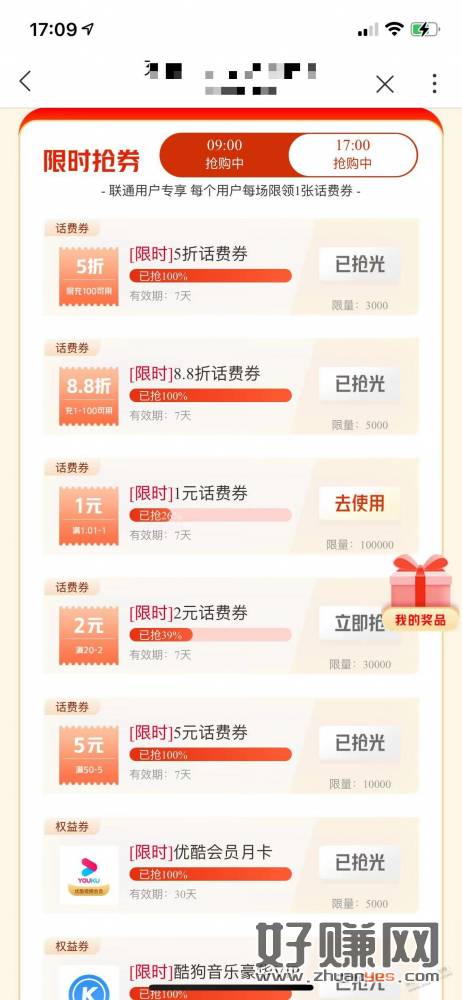 联通APP ,右上角 ,签到&抽奖, 进去,中间横幅广告【充话费5折起】进入下拉页面领1.01-1元话费券,充1.1话费 抵扣积分 ,0撸